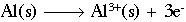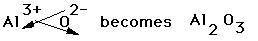 ![]() This reaction shows aluminum metal being oxidized to form an aluminum ion with a +3 charge. The half-reaction below shows oxygen being reduced to form two (2) oxygen ions, each with a charge of -2.