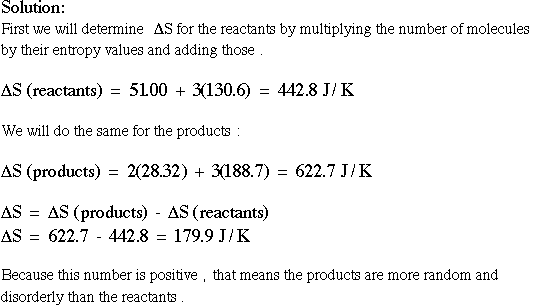 Given the following entropy values (Al2O3 is 51.00; Al(s) is 28.32; H2O(g) is 188.7; H2(g) is 130.6), determine dS for the reaction: