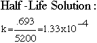 The half life of a specific element was calculated to be 5200 years. Calculate the decay constant (k).
