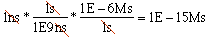 Problem 3 SolutionThere is no conversion equation for megaseconds (Ms) to nanoseconds (ns). Given that 1 s = 1E9 ns and 1 s = 1E-6 Ms, build the conversion 1 ns= ?? Ms. (Notice the calculator notation!) |